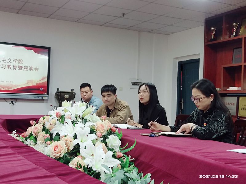 5月18日下午2点,tyc122cc太阳成集团在党员活动室举行了毕业生党员党史学习教育暨座谈会。院党总支书记程焰、副书记夏婷婷、学生党支部书记陈恒全、辅导员王祖法以及所有毕业生党员参加了此次会议。会议由学生党支部书记陈恒全主持。会议开始由校青马宣讲团成员1801班解璐榕为在座党员讲解了百年党史中的长征精神。通过介绍长征的概况,以及长征路上“半条被子”等多个感人故事,让党员们深刻理解了长征精神的真正内涵,备受鼓舞和启发。