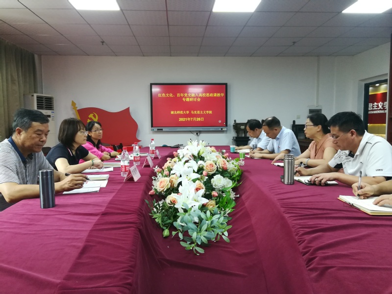 2021年7月26日上午,我院特邀郑州大学时延春、河北师范大学杨辉、广西师范大学彭兰等专家在21B107会议室进行红色文化、百年党史融入高校思政课教学专题研讨。研讨会由我院副院长唐兴军主持。学院领导班子成员、江峰教授以及研究生代表参加了此次研讨会。