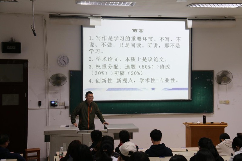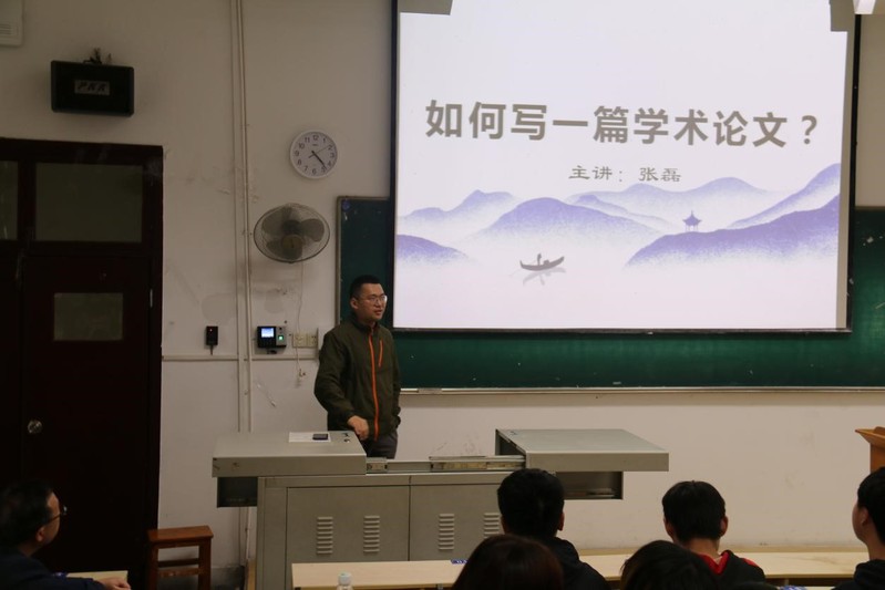 随后,由张磊老师给同学们进行学术论文写作指导。张磊老师从写好论文的标准、如何选题、如何完成初稿、如何修改四个方面给同学们分享了学术论文的写作技巧。