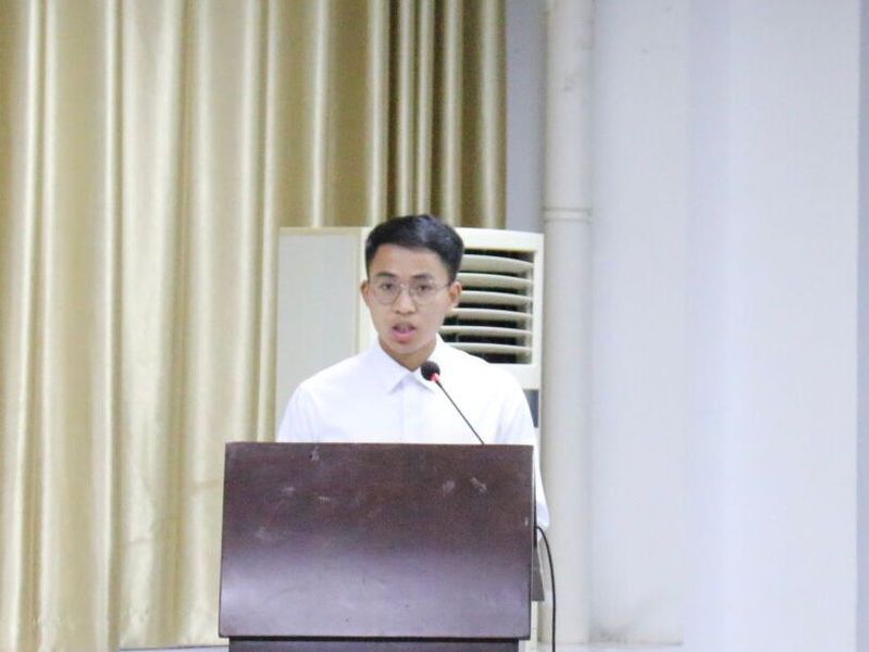 第三项,体育学院李伟同学作为学员代表发言。他结合自己对于百年党史的理解感悟,号召同学们要不忘初心、牢记使命,作为当代青年要牢记总书记嘱托,增强做中国人的志气、骨气、底气,不负时代,不负韶华。
