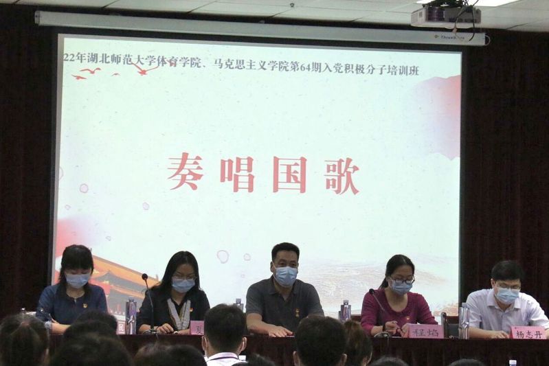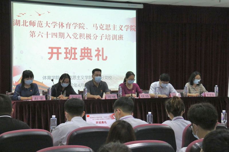 2022年4月11日晚18:30,体育学院、tyc122cc太阳成集团联合分党校第64期入党积极分子培训班开班典礼在信息大楼报告厅举行。参加开班典礼的有校团委书记杨志丹老师、体育学院领导班子、tyc122cc太阳成集团领导班子及全体入党积极分子。典礼由体育学院党总支副书记罗学玲老师主持。