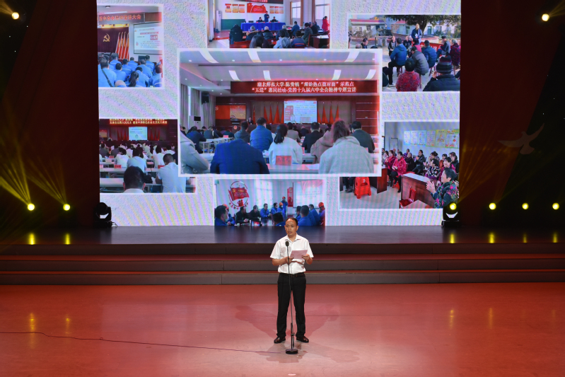 在启动仪式上,中共黄石市委宣传部副部长梅定祥宣读了市委宣传部关于成立市级“理论热点面对面”示范点的通知,宣布在全市成立两家理论热点面对面示范点,市委宣传部常务副部长杨国晋、副部长梅定祥共同为示范点授牌,我院将与沈家营街道结对共建市级理论理论宣讲示范点。