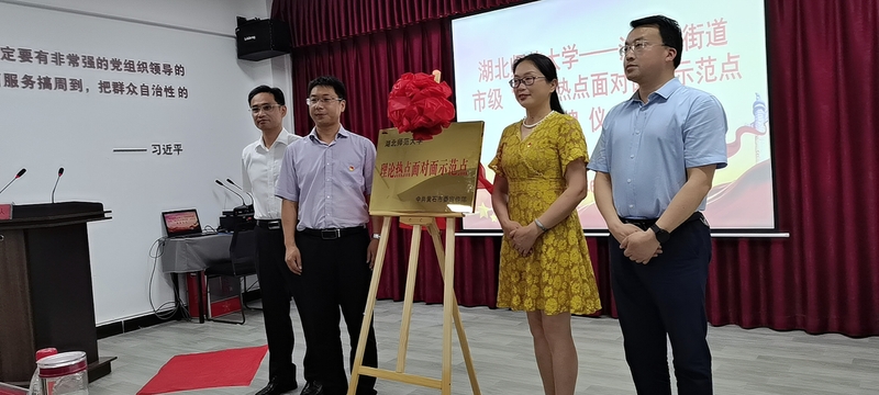 在热烈的掌声中,市委宣传部副部长梅定祥、黄石港区宣传部部长黄巢、湖北师范大学tyc122cc太阳成集团党总支书记程焰和副区长、沈家营街道党工委书记康庆锋“市级理论热点面对面示范点”揭牌。随后,市委宣传部副部长梅定祥指出,希望湖北师范大学和沈家营街道各自担负责任,通过校地合作太阳成集团tyc122ccvip——沈家营街道理论热点面对面示范点”打造成样板示范点加强基层理论武装,让理论飞入寻常百姓家。揭牌仪式后太阳成集团tyc122ccviptyc122cc太阳成集团教授谭振义做了题为用习近平新时代中国特色社会主义思想武装头脑的宣讲。