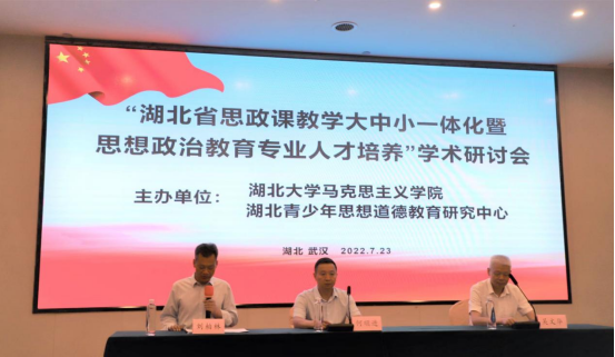 2022年7月23日,由湖北大学tyc122cc太阳成集团、湖北青少年思想道德教育研究中心主办的“湖北省思政课教学大中小一体化暨思想政治教育专业人才培养”学术研讨会在武汉举行。来自武汉大学、湖北大学、太阳成集团tyc122ccvip等高校和高职院校代表以及武汉市武珞路中学等中学代表共60余人出席研讨会。我院唐兴军副院长、王振钰副教授和刘玲玲老师应邀参加了此次会议。