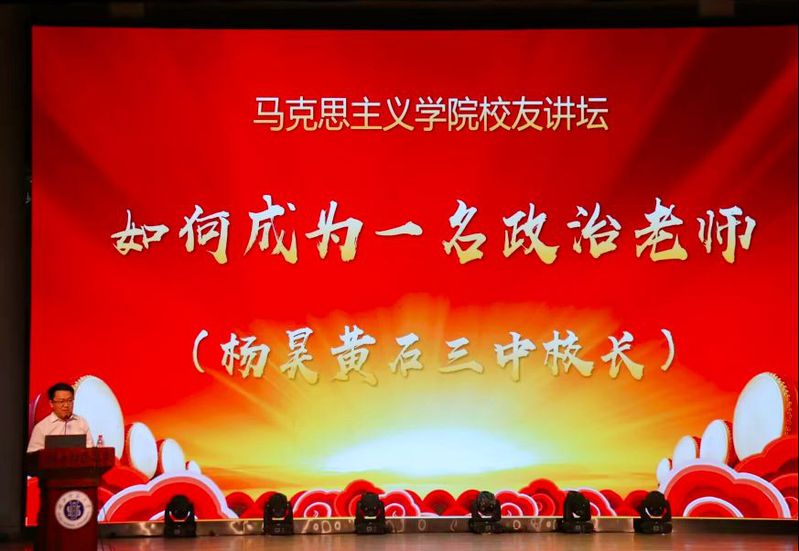 在开学典礼结束后,我院优秀校友、黄石市三中校长杨昊应邀做客我院校友讲坛。他从分享自身求学工作经历开始,围绕“如何成为一名政治老师”主题,通过一系列详实鲜活的故事,分享了自己入职中学教师以来的所思所想所行,给我院新生带来了宝贵的职业经验分享。最后,他希望同学们抓住机会,努力提高师范生职业技能;同时加强锻炼学习,充分提高综合实力;鼓励同学们职业规划多样化选择,做好自身未来规划,早日成为优秀政治课教师!