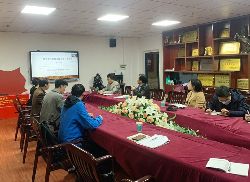 研究生科研能力提升系列报告会是我院为提升马学科研究生科研能力和论文写作水平,在常规举办各种学术讲座的基础上,由“马克思主义理论学科研究生科研创新能力培养策略研究”课题组在学院支持下,借鉴中国传统学术交流的“会讲”模式,为研究生搭建又一学术交流平台。后续将按照每月一次的进度举办研究生论文报告会,争取使每位在读研究生都能有机会参与论文汇报,接受点评指导老师集中、专门、全面的论文修改建议。
