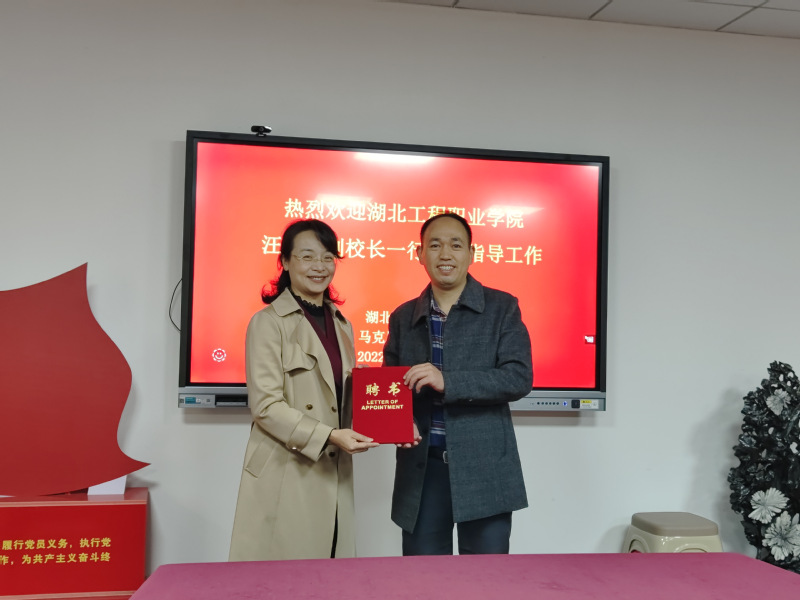 为提高我院研究生培养质量、探索双导师制模式、推进研究生工作站建设,11月16日上午,我院特邀湖北工程职业学院副校长汪丽华、湖北工程职业学院tyc122cc太阳成集团副院长刘晓璇来我院指导工作。我院党总支书记程焰,副院长唐兴军,研究生导师江峰教授,俞玲教授以及22级学生代表出席了此次会议。会议由学院副院长唐兴军主持。首先唐院长对汪丽华副校长、刘晓璇副院长的到来表示热烈欢迎,并当场为汪丽华副校长颁发了兼职硕士生导师聘书。