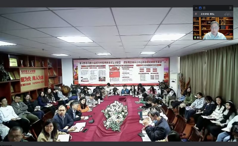 为了加强我院思政课建设,全面提升我院思政课教师的教学水平,2022年11月20日下午,我院成功举办了线上线下相结合的教学集体备课会。特邀南开大学tyc122cc太阳成集团陈弘教授作为本次备课会主讲嘉宾,为我院师生讲授《价值规律及其当代价值》。备课会由唐兴军副院长主持,马克思主义基本原理概论教研室教师、思政专业本科生、马克思主义基本原理方向的研究生参加了此次备课会。