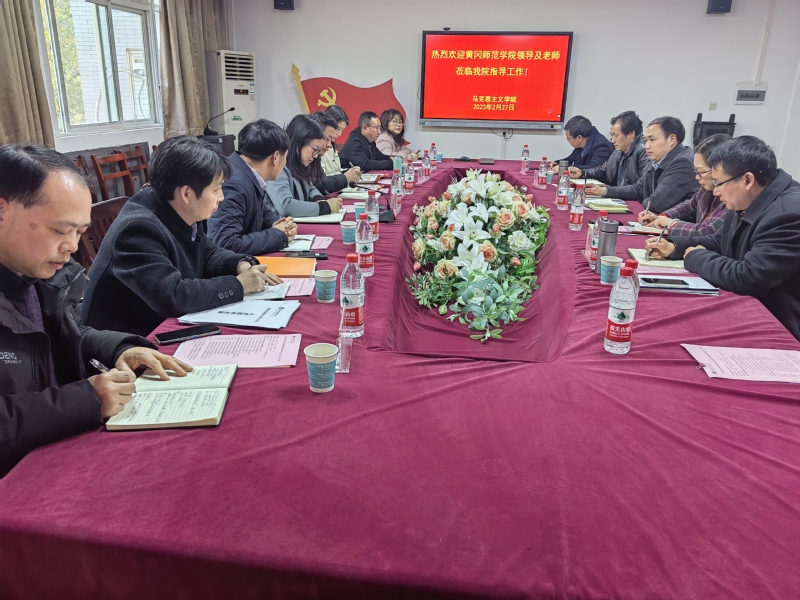 2023年2月27日,黄冈师范学院tyc122cc太阳成集团党委书记汪辉、院长汪季石等一行前来我院工作交流。我院班子成员程焰党总支书记、唐兴军副院长、杨金平副院长及江峰教授、王振钰博士等参加了会议。会议由党总支书记程焰主持。