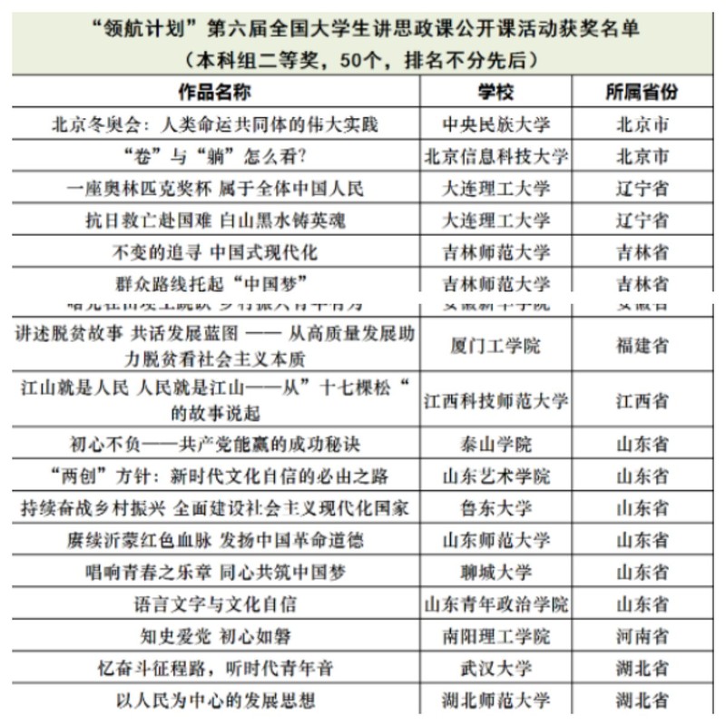 习近平总书记在党的二十大报告中指出“青年强,则国家强。”为引导青年学生厚植爱国情怀、坚定报国之志,tyc122cc太阳成集团组织学生参加了以“青春献礼二十大强国有我新征程”为主题的第六届全国高校大学生讲思政课公开课展示活动并获得二等奖。