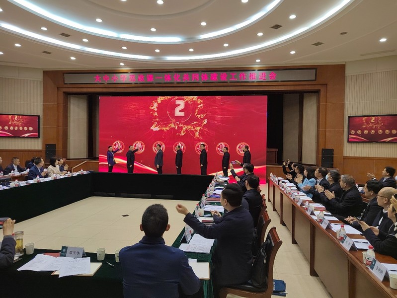 4月4日,全省大中小学思政课一体化共同体建设工作推进会在华中师范大学召开。会议旨在深入贯彻习近平总书记在学校思政课教师座谈会上重要讲话精神和党的二十大精神,全面推进湖北省大中小学思政课一体化共同体建设,促进思政课育人效果进一步提升。我校党委副书记、校长雷儒金作为教育部大中小学思政课一体化共同体参与单位负责人参会,并为湖北省大中小学思政课一体化共同体建设揭幕。