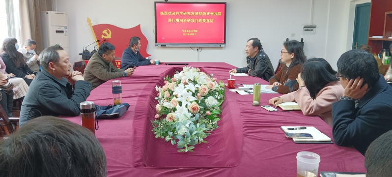 2023年4月6日下午,校科学研究发展院侯功显主任到我院人文楼B座107会议室开展了横向科研项目业务培训讲座,我院党委书记程焰、党委副书记夏婷婷、副院长汪灿德、副院长杨金平以及学院全体教师参加了本次会议。