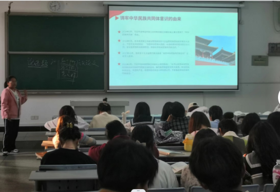 课堂上,该校党委统战部常务副部长、思政课教授熊荣伍及思政专业的一名研究生、三名本科生,通过精彩宣讲、视频播放、随机点评、互动交流、畅谈体会、撰写论文等多种方式,分别讲述了中华民族抗日战争的经过及胜利的原因和意义、中华民族共同体意识、中华民族发展史与民族文化、民族团结进步与民族政策法规等内容,引导大学生深刻领悟习近平总书记关于加强和改进民族工作的重要思想丰富内涵,深刻阐述铸牢中华民族共同体意识的重要意义、具体内容、实践路径,有力推动新时代大学生不断铸牢中华民族共同体意识。