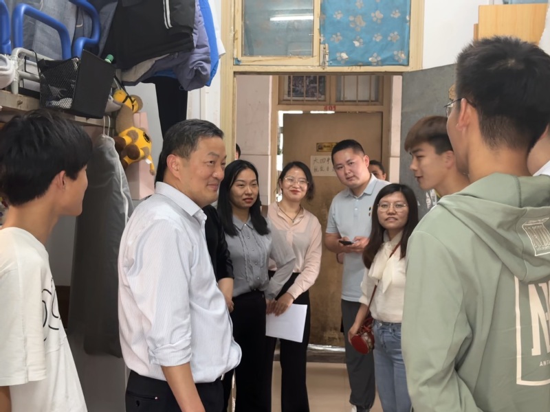 为了进一步了解同学们的学习生活情况,提高同学们的安全防范意识,保障各项工作顺利有序进行。5月5日下午,校长雷儒金携学工部(处)、保卫处领导班子成员,tyc122cc太阳成集团领导班子、辅导员班及主任深入tyc122cc太阳成集团学生宿舍走访慰问,给同学们送去关怀。
