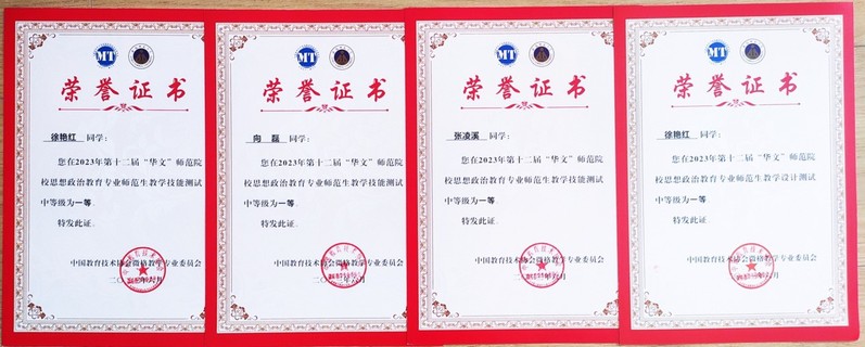 “华文”师范院校思政教育专业师范生教学技能测试是目前国内参与高校众多、影响广泛的教学技能比赛,旨在为思政专业师范生提供教学技能训练展示和相互观摩学习的平台。其中,“华文杯”比赛除了现场教学技能测试外,还设置有教学片段设计测试环节。我院经初赛和复赛推选出华文杯参赛选手。参赛同学在指导老师近两周的精心指导下,凭借充分的赛前准备、精心的教学设计和自信的现场展示,不仅在教学技能测试中取得佳绩,教学设计测试也取得一等奖1名、二等奖2名、三等奖3名的较好成绩。其中,2020级徐艳红同学在教学设计和教学技能两个测试环节均获得一等奖。