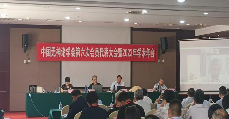 中国无神论学会第六次会员代表大会暨2023年学术年会于6月10日至11日在北京市中家鑫园温泉酒店举行。此次会议主旨是宣传党的二十大精神,继续贯彻落实习近平总书记在2021年全国宗教工作会议上的重要指示。会议由中国无神论学会和中国社会科学院马克思主义研究院主办,中国社会科学院科学与无神论研究中心承办,《科学与无神论》编辑部协办。中央统战部宗教研究中心、中共中央党校、中国社会科学院、中央社会主义学院以及来自新疆大学、新疆师范大学、内蒙古大学、山西大学、浙江大学、南开大学、武汉大学、山东大学、四川大学、首都师范大学、北京联合大学、中国人民公安大学等全国近50所高校的专家学者参加了此会议。