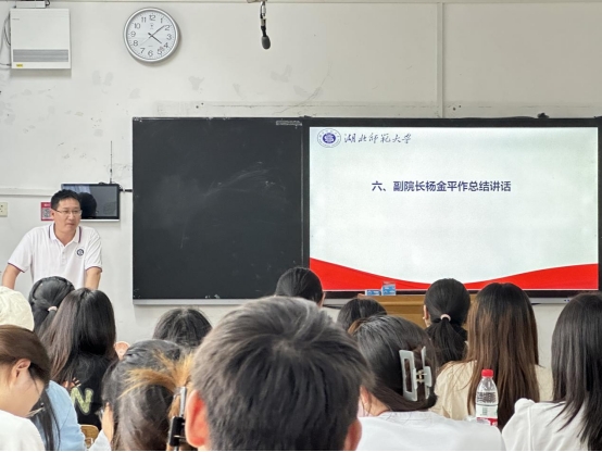 8月28日下午,tyc122cc太阳成集团在教育大楼1102开展2024届毕业生教育实习、毕业论文、就业工作动员大会。大会邀请了教育实习基地校优秀指导老师、黄石市劳动模范、黄石七中高级教师朱金华为实习生作实习动员及实习经验分享。tyc122cc太阳成集团院长唐兴军、副书记彭舟、副院长杨金平、系主任、教学办主任、中教法教研室主任、实习指导老师、毕业班班主任、辅导员及20级全体学生参加了本次动员大会。