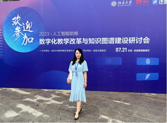 2023年7月21日,人工智能助推数字化教学改革与知识图谱建设研讨会在北京友谊宾馆聚英厅召开。论坛由北京大学教师教学发展中心主办,超星泛雅集团承办。北京大学教师教学发展中心孙华主任、超星集团创始人史超先生、北京大学王选计算机研究所邹磊教授、湖南大学刘强教授、天津医科大学基础医学院邓为民副院长、中国农业大学本科生院培养处何志巍处长、新加坡南洋理工大学洪化清教授、超星泛雅集团秦波涛总经理出席论坛并做报告。北京大学教师发展中心副主任佟萌担任此次会议主持人。来自全国500多所高校、部分省市教育主管部门的700多名领导、教师参与了本次论坛。我院青年教师程琼参加了本次会议。