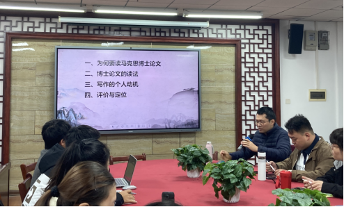本次读书会围绕着为何要读马克思博士论文、博士论文的读法、写作的个人动机以及评价和定位展开。张磊老师认为,马克思博士论文是马克思主义唯物史观的秘密诞生地,马克思的博士论文不是不成熟的习作,也不是可有可无的无足轻重的作品,应该引起我们的重视,需要认真研究。在此基础上,张磊老师为学生讲解了历史上对马克思博士论文的错误认识,如认为马克思博士论文是早期不成熟的作品,只是为古希腊哲学史填补了一些知识,仍旧是唯心主义立场等。