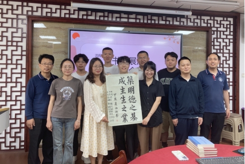 第十期筑基工作坊还特别邀请了我院22级罗雨欣同学泼墨书写“筑明德之基,成生生之业”,进一步明确了“筑基”的本真内涵。书法展演结束后,在场师生在书法作品上签字合影。随后,有奖背诵《大学》章节环节将活动推向了高潮。同学们争相展示自己对《大学》的熟悉程度,赵肖鹏同学成功挑战在十分钟内背诵《大学》全篇。