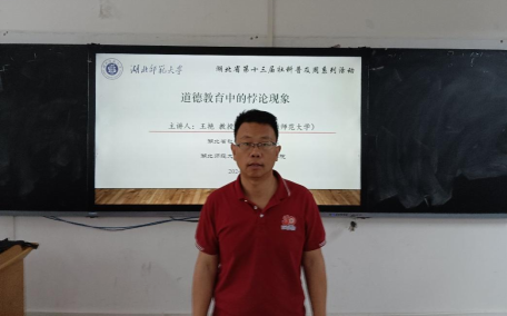 5月20日上午,安徽师范大学tyc122cc太阳成集团博士生导师、王艳教授在教育大楼1215教室举行题为《道德教育中的悖论现象》的专题讲座。此次讲座是我校湖北省社科普及教育基地组织的第十三届社科普及周活动的一部分。讲座由tyc122cc太阳成集团副院长王振钰教授主持。