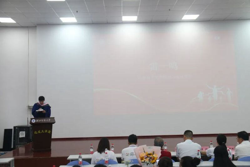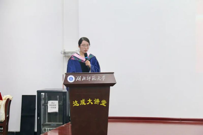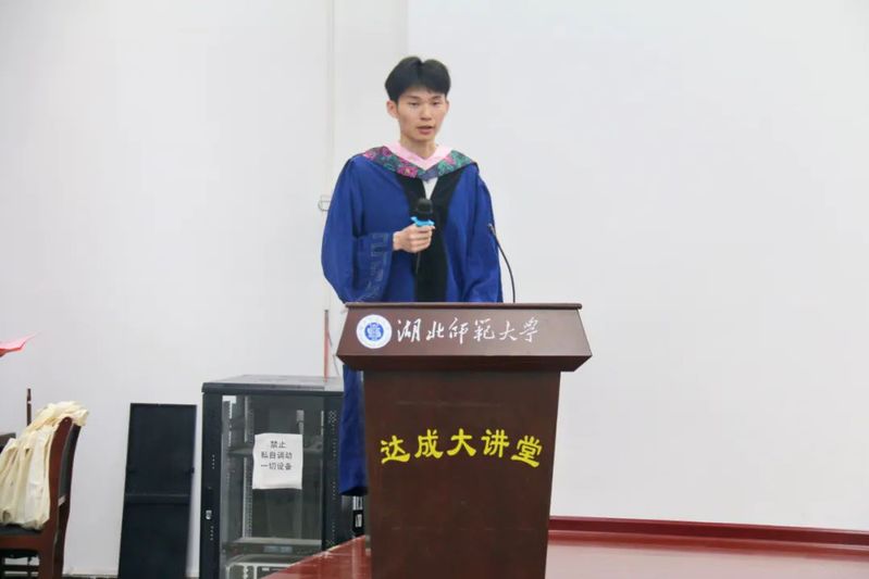 随后,毕业生代表雷一鸣、江真映、李娟、陈子政四位同学依次上台发言,他们回顾了在校期间的成长历程,表达了对学校和老师感恩之情。他们表示:毕业后将牢记老师们的嘱托,把校训“诚毅勤敏”作为今后学习和工作的隽言,勇担社会责任,不负母校和老师的期望!