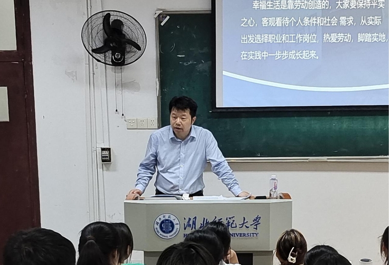 在经管法学院2204、2205班“形势与政策”课堂上,校党委常委、统战部部长肖六亿围绕就业形势良好、落实就业政策、拓宽就业渠道等内容,帮助同学们梳理就业之困、职业之惑。他分享了自己求学与就业的经历,鼓励同学们端正就业心态,厘清发展方向,树立正确的就业观和择业观。他指出,青春是用来奋斗的,青年大学生要拒绝“躺平”“啃老”,拒绝“慢就业”“懒就业”和“不就业”,要积极就业、主动就业、自觉就业,敢于尝试、勇于创新、抓住机会,担负起对自己、对家人、对国家和民族的责任。