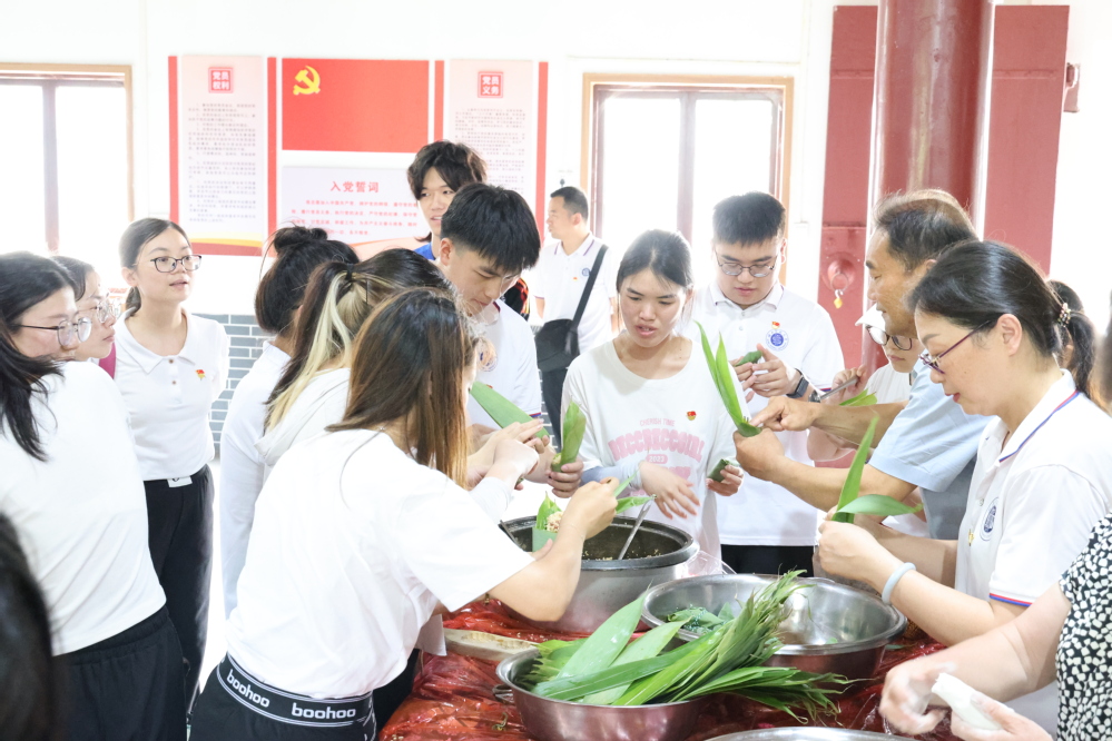 主题党日活动最后,师生党员一起学习“大古书”,制作印子粑、包粽子,品尝忆苦思甜红军餐,在劳动中感受红色文化,在体验中感悟革命精神。摄影:学通社陈思源赵彤琳