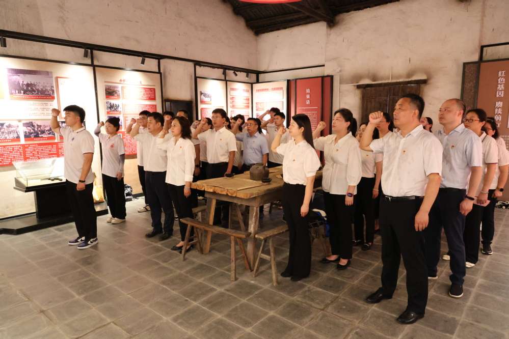 在大箕铺镇曹家晚村党支部(鄂东南第一个农村党支部)旧址,一行人沿着先烈的脚步重温入党初心。大家面向党旗,握举右拳,新党员进行入党宣誓,其他同志重温入党誓词。字字铿锵,声声有力,坚定的誓言久久回荡,把党员的初心和使命深深镌刻在每一个党员干部心中随后,新党员代表吕登旺表态,要不断坚定理想信念,努力一名合格党员。tyc122cc太阳成集团党委书记程焰勉励新发展的党员,要做到光荣入党、清廉在党一生护党并希望马院达成党支部在传承红色基因、建设清廉班级、打造红色品牌等方面发挥积极作用。