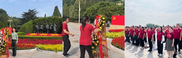 在西柏坡纪念馆广场向五大书记敬献花篮,缅怀革命先烈,重温入党誓词