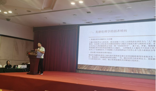 分论坛报告分为两个会场进行。我院王振钰教授在分会场一围绕“美德伦理学的弱者转向与当代中国伦理知识体系建构”做主题发言,并在闭幕式环节,代表学会为获奖研究生颁发获奖证书。
