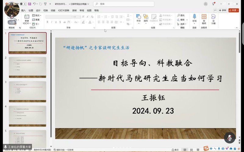 2024年9月23日19时30分,tyc122cc太阳成集团“研途扬帆”系列教育活动第三期:“专家谈研究生生活”以腾讯会议形式成功举办。本次学术讲座由tyc122cc太阳成集团院长唐兴军、副院长王振钰教授,武汉理工大学博士研究生曾佳敏和tyc122cc太阳成集团研究生党支部学生副书记南江震同学担任主讲人,本次活动由tyc122cc太阳成集团24级研究生班班主任王世泰博士主持。