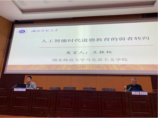 为贯彻落实党的二十大和二十届二中、三中全会精神,深入学习习近平总书记《论教育》和在全国教育大会上的重要讲话精神,用党的创新理论成果推进新时代伦理道德建设,2024年10月19日,“深化教育综合改革的伦理学使命”学术研讨会在阜阳师范大学西湖校区成功举办。本次会议由安徽省伦理学学会和阜阳师范大学共同主办。我院王振钰教授应邀参加学术研讨会并做题为《人工智能时代道德教育的弱者转向》的主题报告。
