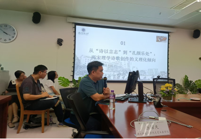 张耀天博士汇报的主题发言题目为:《文、道之动:朱子理学思想与诗歌创作的会通与融合》。报告从“诗以言志”到“孔颜乐处”的角度,阐述了两宋理学诗歌创作的义理化倾向;从“存养心性”到“识仁达道”的诠释,分析了朱子理学诗歌创造的哲学化。该报告赢得了与会专家、学者的关注。