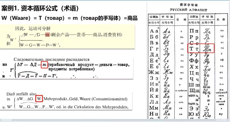 在第二部分,刘沛舒博士着重讲解了H3手稿的文本分析。刘沛舒博士指出,H3手稿中有关资本循环公式的异文展示了马克思在理论体系中的深层思考和不断尝试。讲座中通过对“W-G-W’”等符号的变化进行剖析,揭示了这些符号在理论分析中的细微区别对理解的深远影响。