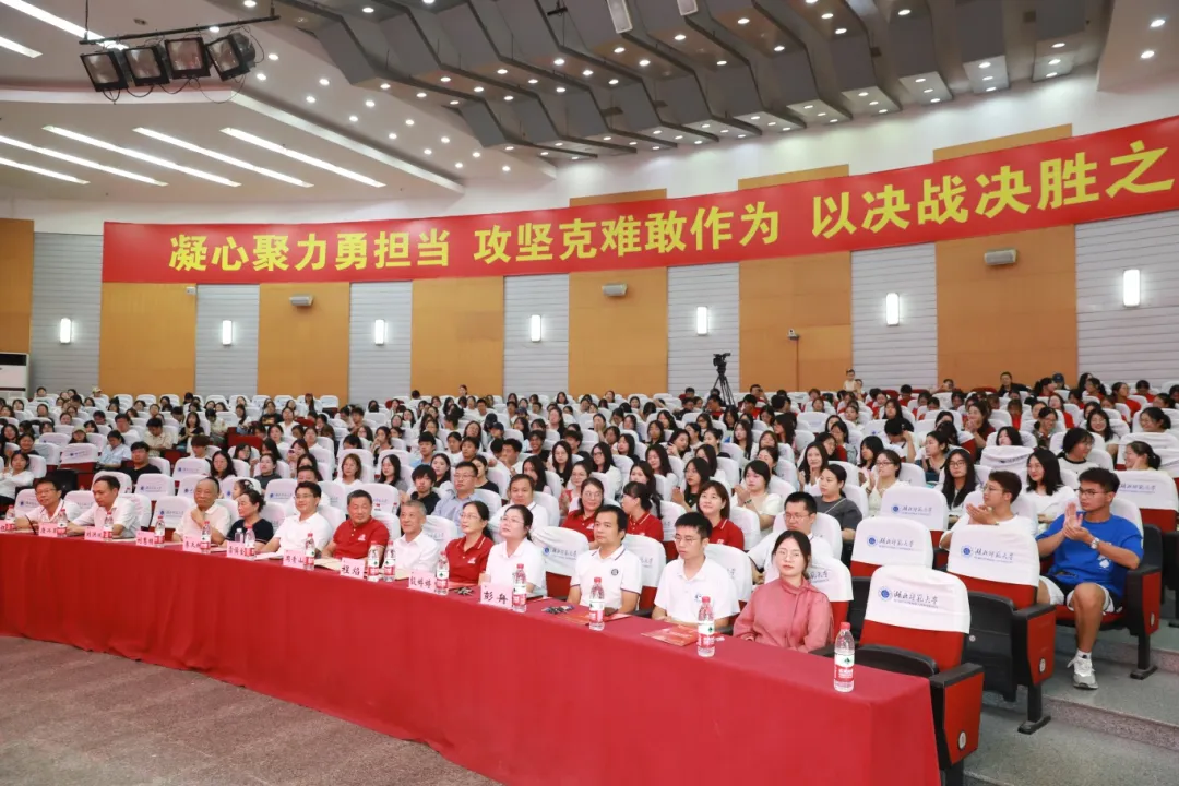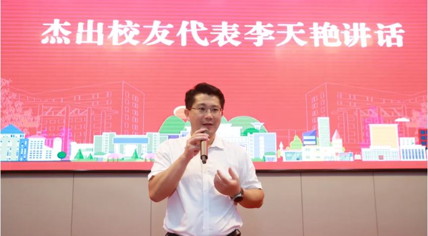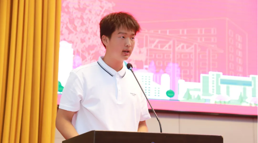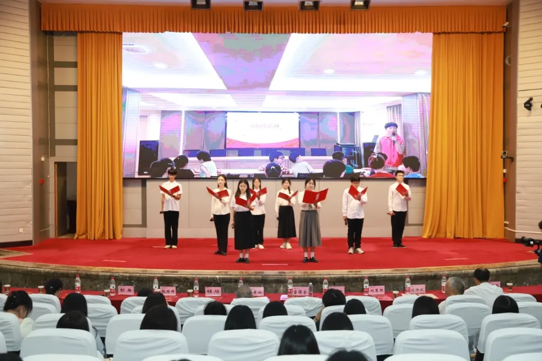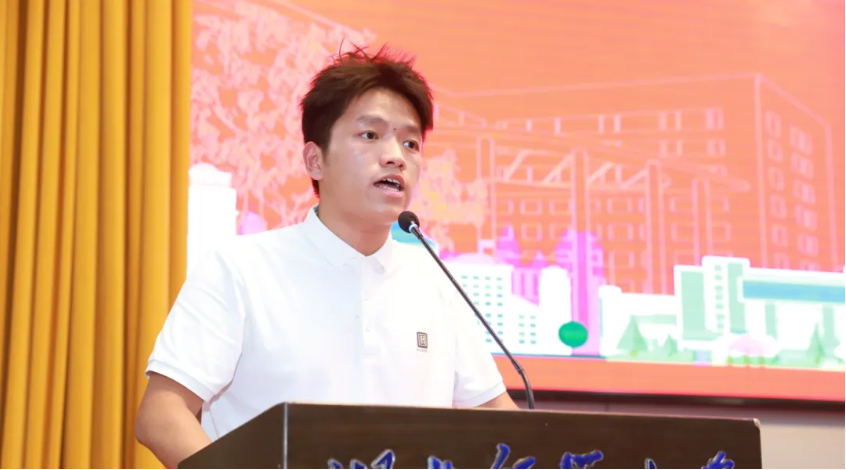 大会上,本科生郑智豪和研究生吴迪代表新生发言,22级本科生唐思茹代表老生发言。23级毕业生代表肖志杰用一则视频和一封信展示了他作为一名特岗教师的工作与生活,他鼓励学弟学妹投身乡村建设,为推动城乡教育均衡发展贡献力量。杰出校友代表、襄阳五中校长李天艳以求学人和职业人的亲身经历,分享了成长感悟。学院江峰教授为院庆题诗一首,程琼博士将这首诗进行了深情演绎。