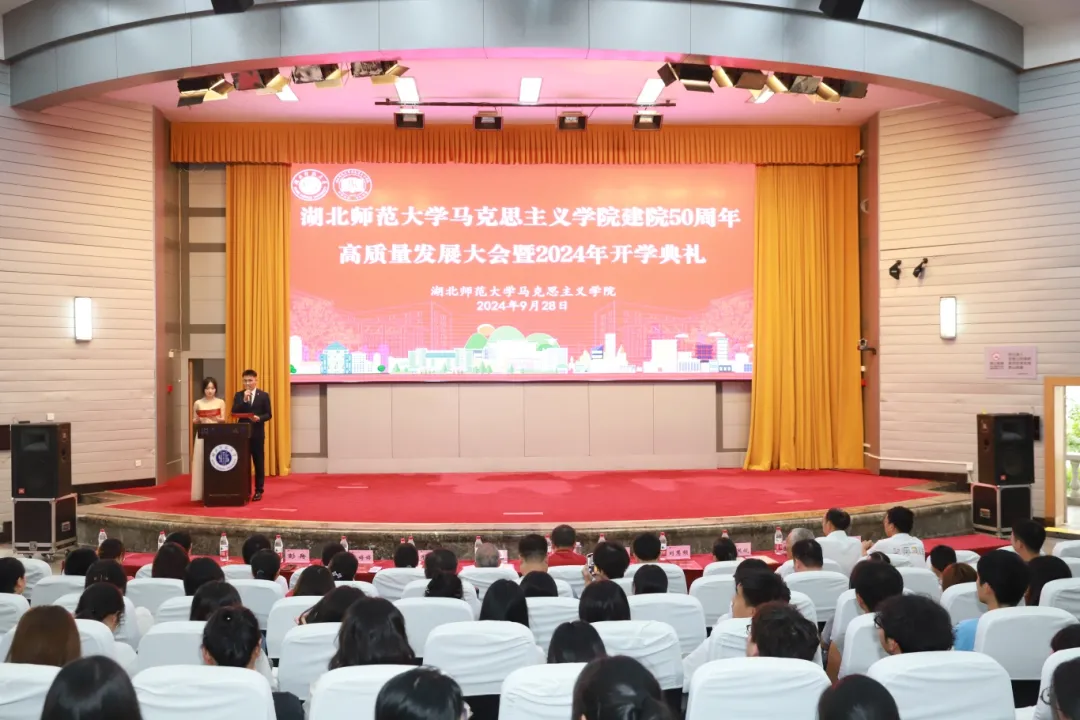 9月28日下午,学院在教育大楼报告厅举办了建院50周年高质量发展大会暨2024年开学典礼。校党委副书记、校长雷儒金,学院原院长、荣休教授周青山,学院原副院长、荣休教授刘慧频,学院荣休教师刘洪斌,96级校友、襄阳五中校长李天艳,院党委书记程焰,院长唐兴军,材料科学与工程学院副书记、2301班班主任殷婷婷,院党委副书记彭舟,副院长王振钰老师,以及学院教师代表和24级全体研究生、22级23级24级全体本科生参加本次活动。本次大会由24级研究生肖宏明、23级本科生高雅婷主持。