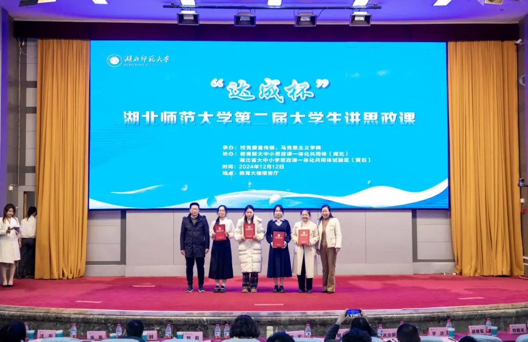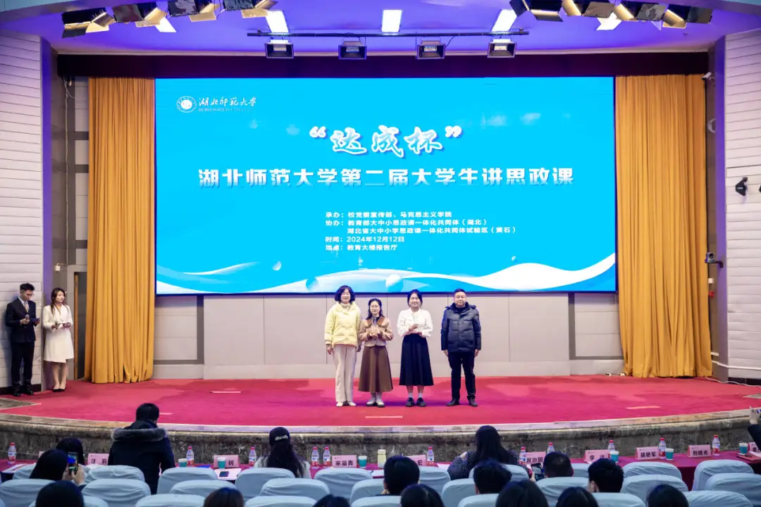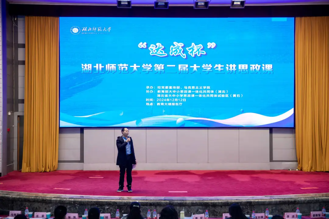 为深入学习贯彻习近平新时代中国特色社会主义思想和习近平总书记关于深化思政课改革创新的重要指示精神,推进学校大思政课建设,发挥思政课立德树人关键课程作用,我校于12月12日下午在教育大楼报告厅成功举办了“达成杯”太阳成集团tyc122ccvip第二届“大学生讲思政课”大赛决赛。大赛由学校党委宣传部和tyc122cc太阳成集团承办,学校党委书记李宏,黄石市中山小学党总支书记宋溢青,黄石市广场路小学校长刘莉,黄石市第十六中学教联体党总支书记、校长叶钊,黄石市第十八中学校长张凯,黄石市第六中学副校长汪莉,黄石市教科院政治学科教研员马海平,校党委宣传部常务副部长祝治国,学工部副部长熊英,教务处处长胡艳军,团委书记刘晓光以及学院全体领导班子成员出席会议。