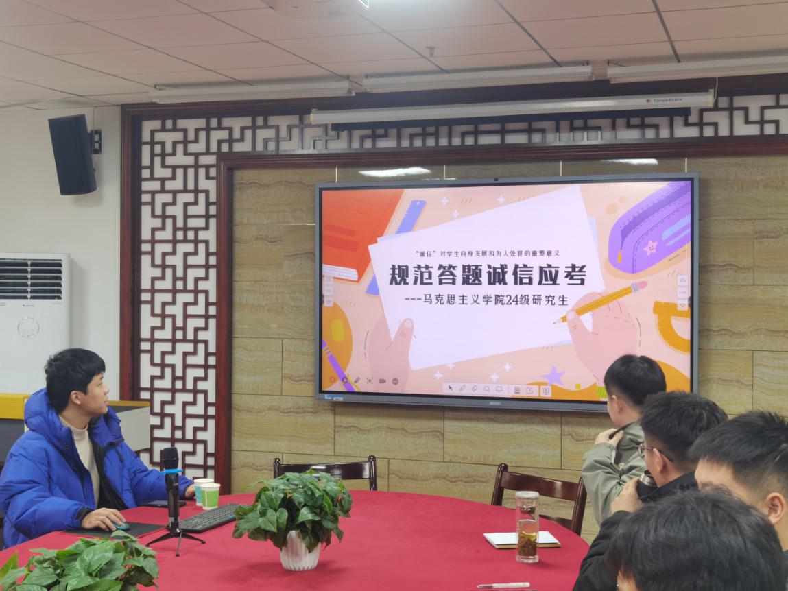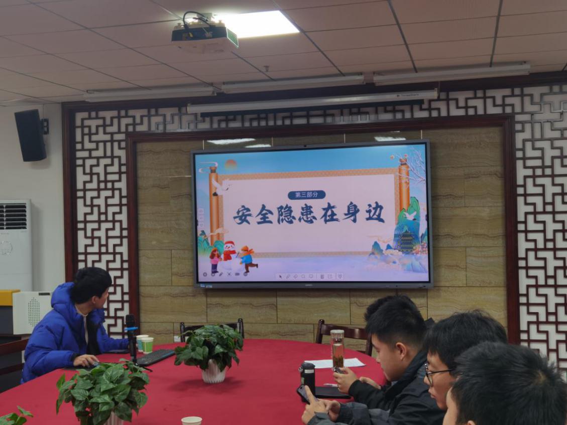 为落实研究生院关于寒假工作的安排以及强化研究生的安全意识,增强研究生安全风险的辨别能力,宣传普及安全知识,tyc122cc太阳成集团2024级研究生班全体学生于2024年12月27日上午,在人文楼21B207召开安全教育班会。tyc122cc太阳成集团2024级研究生班安全委员薛晓轩作为主讲人,他向全体研究生宣传普及安全相关知识,帮助研究生提升自我保护能力。