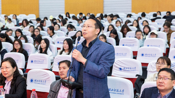 在互动交流环节,与会师生踊跃,气氛热烈非凡。黄石市教科院教研员马海平针对“议题式教学”“培养青年思政教师”提出问题,tyc122cc太阳成集团硕士研究生查李婷就教育实习中遇到的“如何提升教师数字素养”提问,电气学院青年教师、省教创赛二等奖获得者张琪则就“如何在教学竞赛中取得优异成绩”抛出疑问。针对以上问题,于赫老师结合自身经历一一作答,并为老师们提供了切实可行的建议和改进方案。