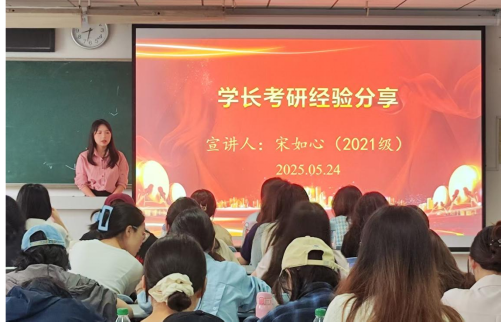 在学长考研经验分享环节,学院特邀已录取为我院25级学科教学(思政)方向研究生的21级学姐宋如心同学做考研经验分享。