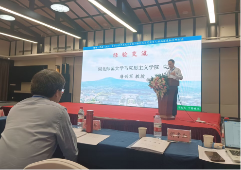 我院院长唐兴军教授在经验交流环节,介绍了tyc122cc太阳成集团立足黄石地方文化资源,围绕工业文化的传承与弘扬开展大中小学思政课一体化建设和大思政课建设的思路和经验。在依靠自力更生大力发展新质生产力的当下,将工业文化融入大思政课建设更具有现实意义,我院唐院长的发言得到了与会专家的热烈反响。