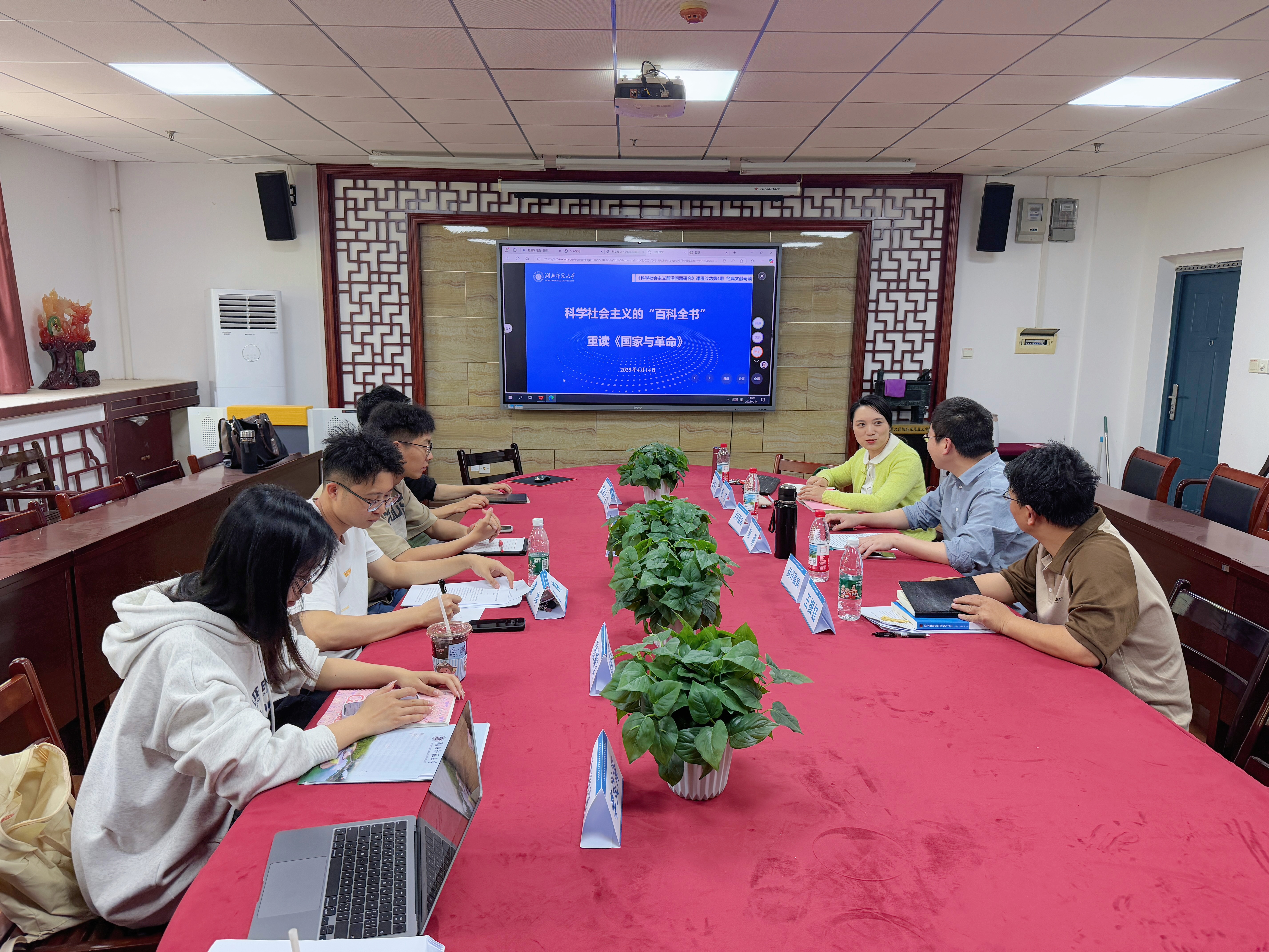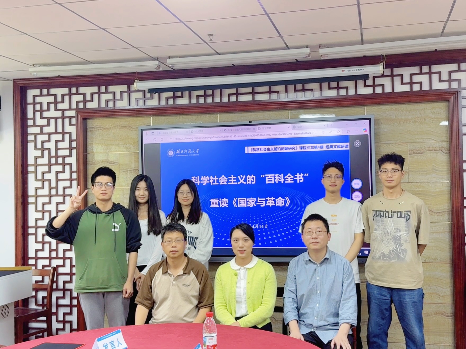 为培育研究生学术素养,提升经典文献研读能力,推动马克思主义理论学科建设与研究生教学模式创新,学院依托研究生课程《科学社会主义前沿问题研究》开展系列学术沙龙,并于2025年4月14日下午成功举办第四期经典文献研读课程沙龙。本次活动以“科学社会主义的‘百科全书’——重读《国家与革命》”为主题,特邀tyc122cc太阳成集团副院长王振钰教授、胡刚教授(校聘)担任点评嘉宾,吸引了马克思主义原理专业师生及校内学术爱好者积极参与。沙龙由课程负责人程琼副教授主持。