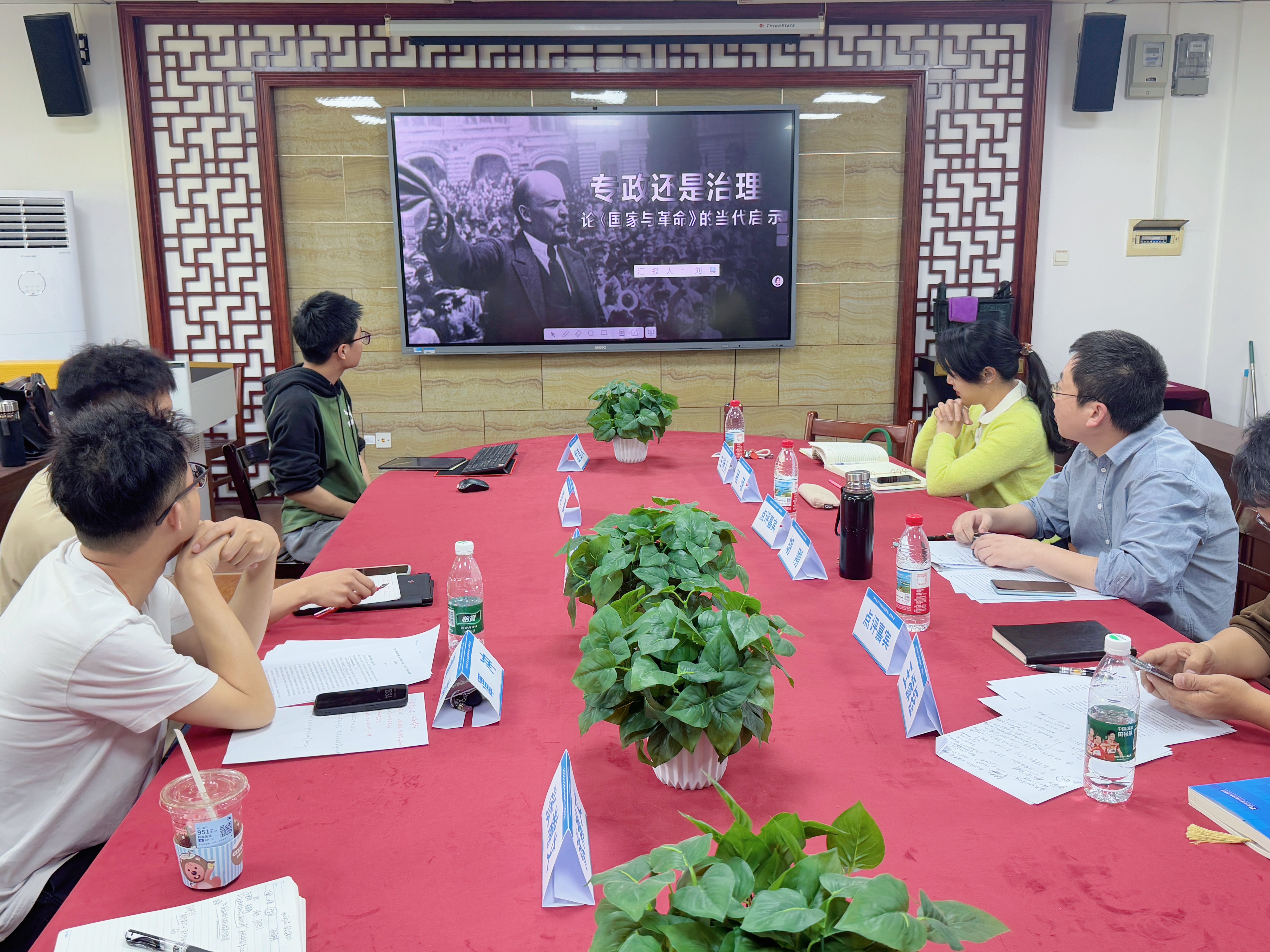 沙龙活动中,五位研究生围绕列宁经典著作展开多维解读。李炎泽通过历史档案溯源,揭示《国家与革命》“未写完的书与未竟的事业”背后的时代使命;张瀚文紧扣马克思主义国家学说的核心命题,系统阐释“国家的本质是什么”的理论真谛;谭冲以无产阶级专政理论为切入点,辩证分析国家与革命的深层关联;王麒皓通过文本细读,梳理列宁对机会主义、无政府主义等错误思潮的批判逻辑;刘晨立足当代治理实践,探讨“专政还是治理”的现代性命题。分享人将文献考据与理论阐发相结合,在经典文本与时代课题的对话中展现了学术思辨的深度。