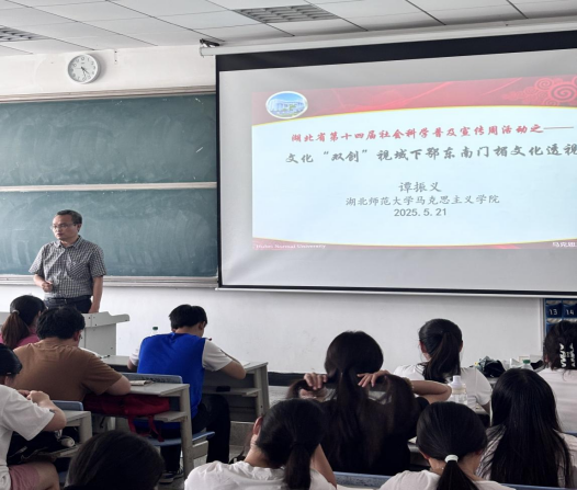 5月21日下午,湖北省社会科学宣传普基周系列活动之——“优秀传统文化进高校”学术讲座活动在我校科技大楼408教室顺利举行。讲座活动吸引了120余名师生倾听。