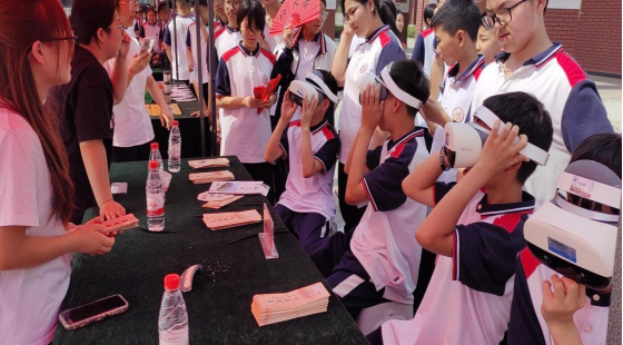 湖北省第十四届社会科学普及宣传周启动式共包括社科集市、参观考察、启动仪式、“社科之光”演讲、文艺汇演等丰富多彩的活动。我校在社科集市上的红色革命文化VR沉浸式体验、“聚焦两会”等2项特色社科普及活动受到大冶湖学校师生青睐,并得到了一致好评。“聚焦两会”一是现场向师生介绍两会相关知识以及今年全国、湖北省、黄石市两会有关精神。二是以宣传册形式介绍两会相关知识。“红色革命文化VR沉浸式体验”就是让师生通过VR沉浸式体验红色革命文化,使师生足不出户就能够受到各类革命文化的熏陶,其新奇的形式吸引了众多师生参与体验。