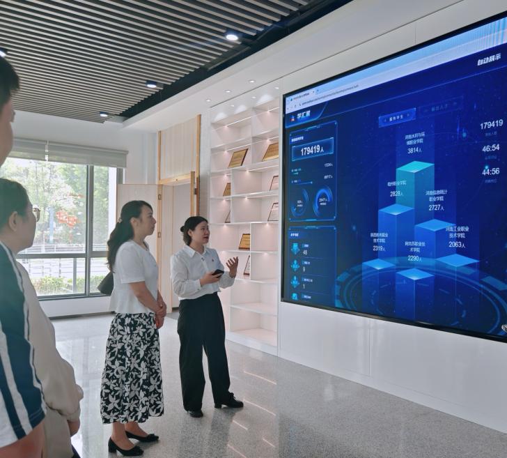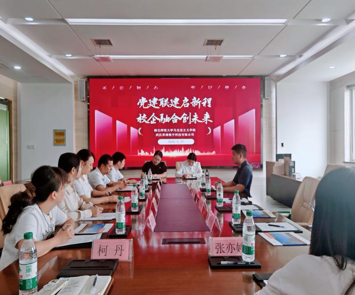 活动伊始,武汉厚溥科技有限公司负责人向大家介绍公司的运营理念和业务范围,并展示了公司在“AI+教育”“大数据人才培养”等领域的业务布局和发展战略,他们通过职业倾向测评、专业技能分析、岗位匹配推荐等核心功能模块,帮助学生明确自身职业定位,提升就业竞争力,为推进学生精准化就业指导体系建设提供了强有力的技术支撑。随后,李洁书记介绍了我院党支部建设的基本情况以及党建工作的主要特色,她表示希望通过校企共建活动推动校企在人才培养、课程建设等领域深度融合、为构建全息化“大思政”育人体系提供有力支撑,在协同育人的同时为毕业生提供更多的就业机会,并且她还着重强调党建在校企合作中的引领作用,为双方合作注入红色动能。
