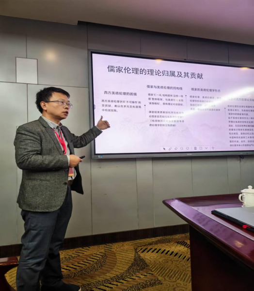 在“AI赋能中国伦理学范式变革”讨论环节,王振钰教授围绕“门楣文化的伦理教化功能及其当代转化”做汇报发言。王振钰教授在发言中强调,中国伦理学的自主知识体系必须“向下扎根”,通过田野调查、数字民族志等方式把地方性道德知识纳入理论视野,才能实现“守正”与“创新”的辩证统一。