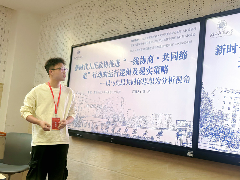 我院24级硕士研究生谭冲与王世泰博士共同撰写的论文《新时代人民政协推进“一线协商·共同缔造”行动的运行逻辑及现实策略》入选本届学术研讨会,谭冲应邀参会并向与会学者们阐述其研究心得体会。