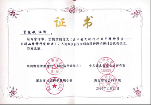 我院教师程琼、江峰合作撰写的《数智赋能大别山精神传承与弘扬的逻辑理路与实践进路》,以及曾佳敏、江峰合作撰写的《为中国式现代化筑牢精神堡垒——大别山精神研究综述》两篇论文,经严格评审脱颖而出,成功入选本次研讨会优秀论文,并受邀现场交流研讨。据悉,本次研讨会聚焦“弘扬大别山精神”核心主题,得到了社会各界的广泛关注与积极响应,共征集到来自省内外机关事业单位、高校、党校、干部学院及科研院所等多领域的论文386篇。经严谨评审,40余篇论文获评优秀论文,形成了一批兼具理论深度、时代特征与实践价值的研究成果。